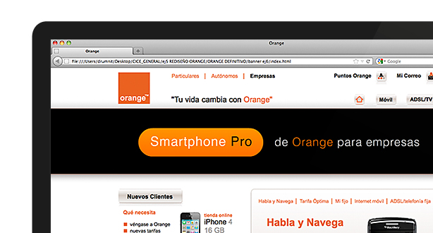 Se trata de otro proyecto académico en el nos pedían un banner publicitario animado con Flash y ActionScript 3. Está integrado en otro proyecto académico en el que rediseñé la web de Orange.