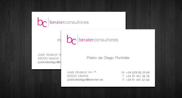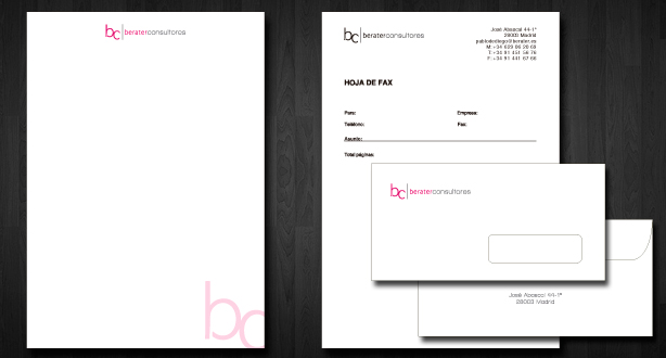 Diseño del Logo, tarjetas y aplicaciones de papelería de Berater Consultores